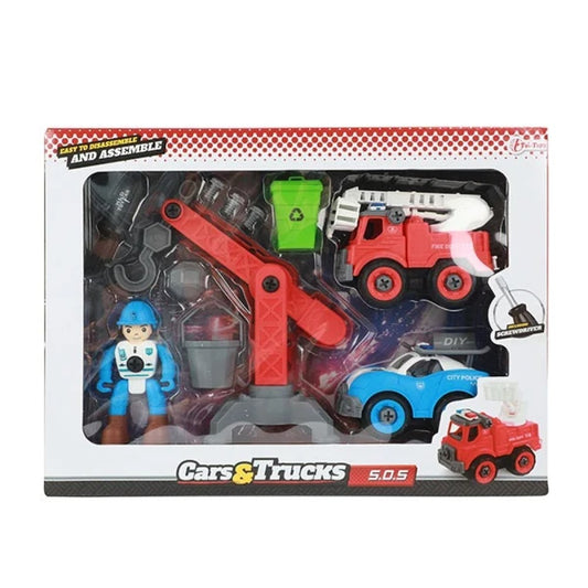 Feuerwehr Polizei Auto und Kran zum Bauen