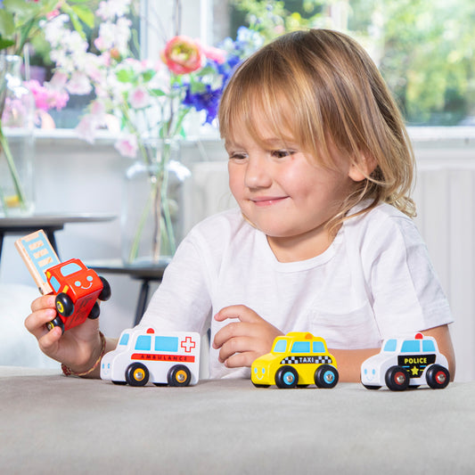 Minifahrzeuge mit 4 Fahrzeugen Polizei Feuerwehr Krankenwagen Taxi