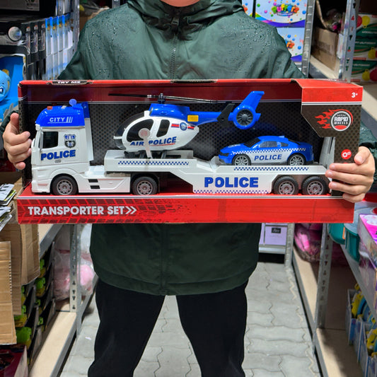 Polizei Autotransporter 54 cm Auto Hubschrauber mit Licht und Sound