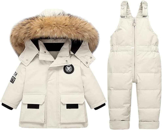 LSHDCER Baby Kleinkind Schneeanzug Jungen Mädchen Winteranzug Skianzug Daunenjacke mit Fellkapuze & Daunenhose Bekleidungsset 2tlg Outfit