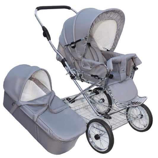 EICHHORN Kinderwagen Kombikinderwagen Komplett-Set, 0-3 Jahre, umbaubar zum Sportwagen, inklusive Babytragetasche, Stoff Grau, ECCO-Räder