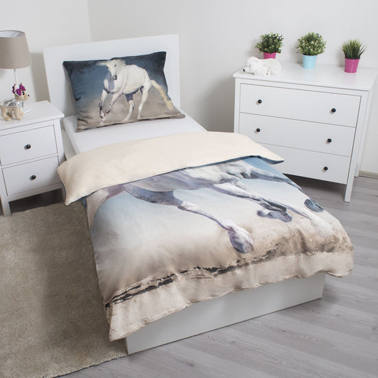 Pferde Bettwäsche - weiche Baumwolle 140x200 cm Pony Kissen und Decke