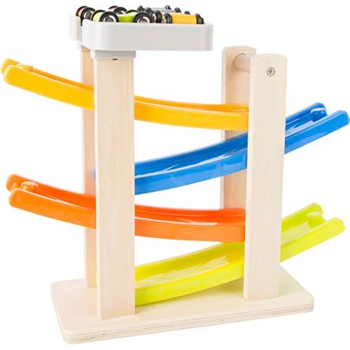Rennbahn mit Parkdeck aus Holz – personalisierbar, inkl. 4 Autos | small foot 10602