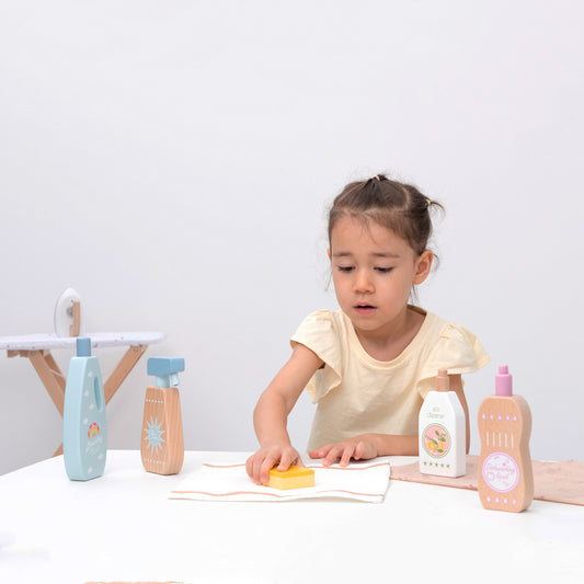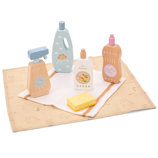 Reinigungsmittel Set aus Holz für Kinder Holzspielzeug Rollenspielzeug