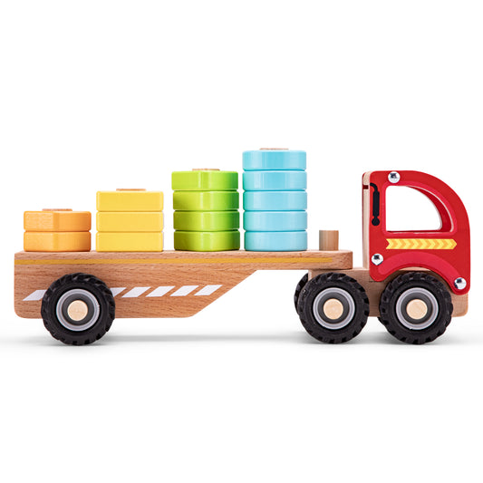 Autotransporter mit Steckformen Abschleppwagen u Steckfiguren aus Holz