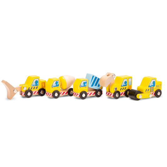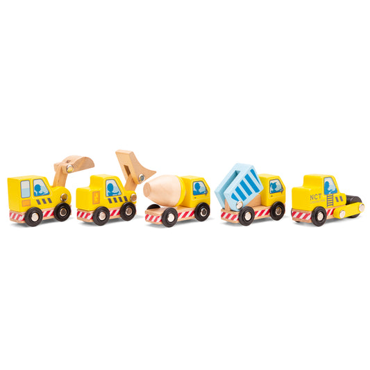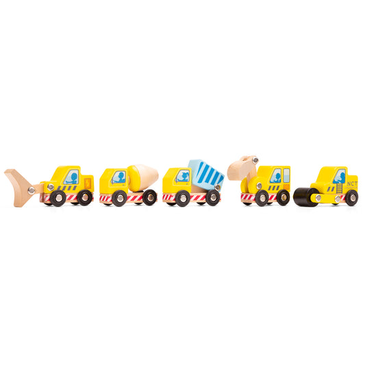 Baufahrzeuge Holz 5 Fahrzeuge Bagger Betonmischer Radlader Walze LKW