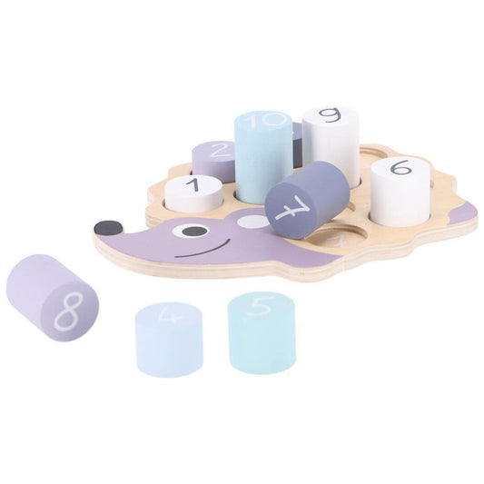 Igel Puzzle aus Holz 10 Zylinder mit Zahlen