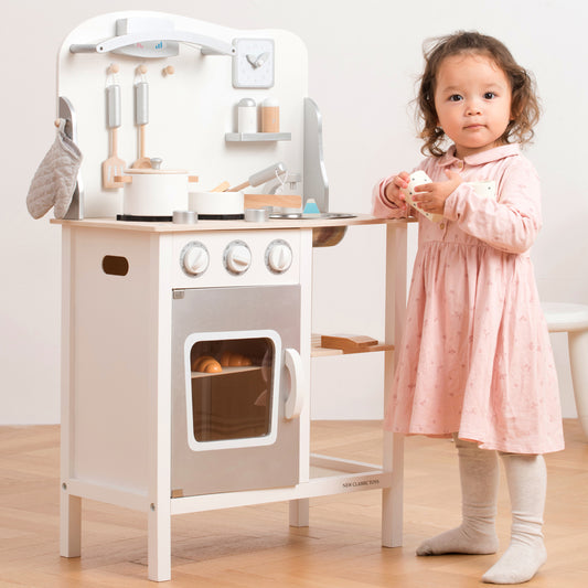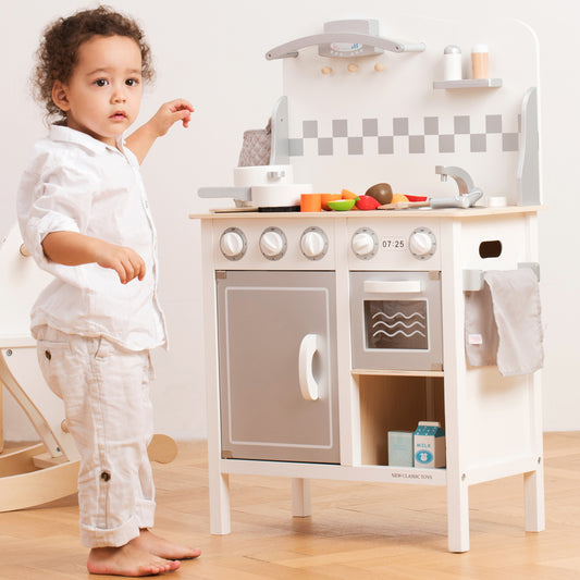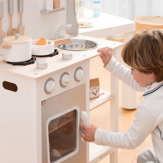 Küchenzeile Kinderküche aus Holz Modern Weiß Holzküche Holzspielzeug