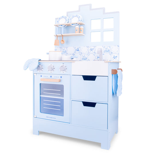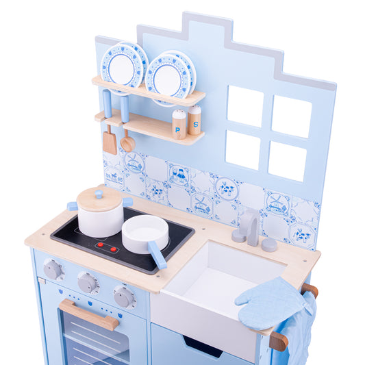 Küchenzeile Kinderküche aus Holz Delfter Blau Holzküche Holzspielzeug