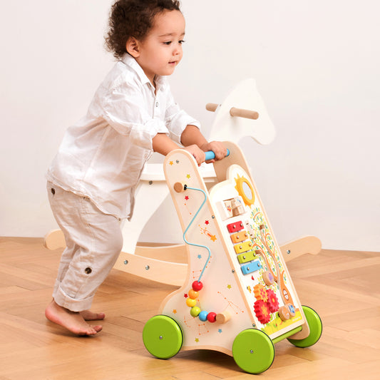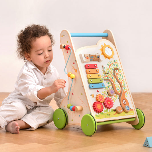 Lauflernwagen Lernlaufhilfe aus Holz mit Formsortierer und Zahnräder