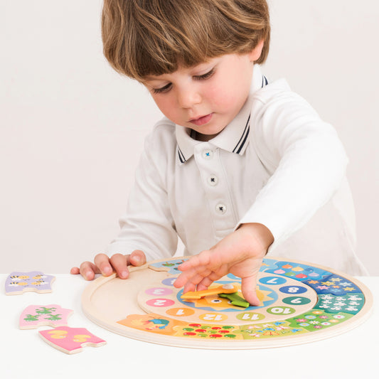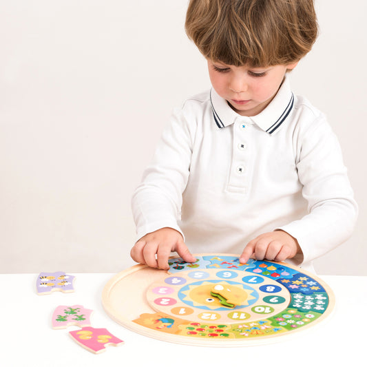 Lernspieluhr als Puzzle mit Sonne Lernspielzeug für Kinder aus Holz