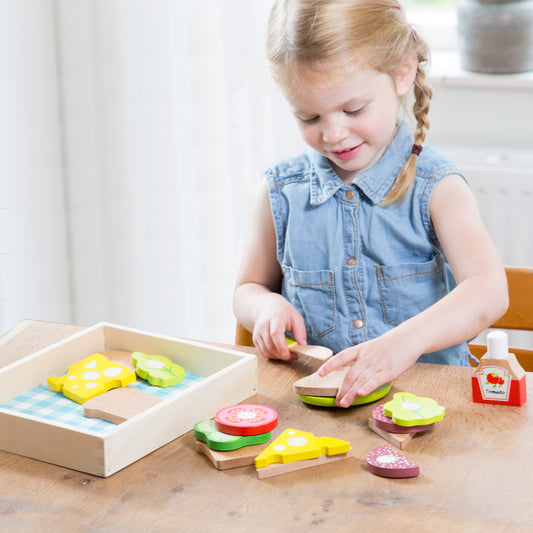 Schneideset Sandwich Picknick-Set mit Holzkiste Kinderküchen-Zubehör