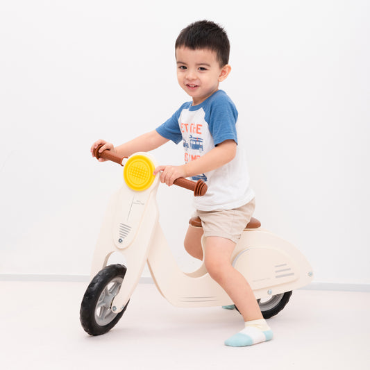 Laufroller aus Holz Kinder Rutscher Creme Laufrad Holzrad Holzroller