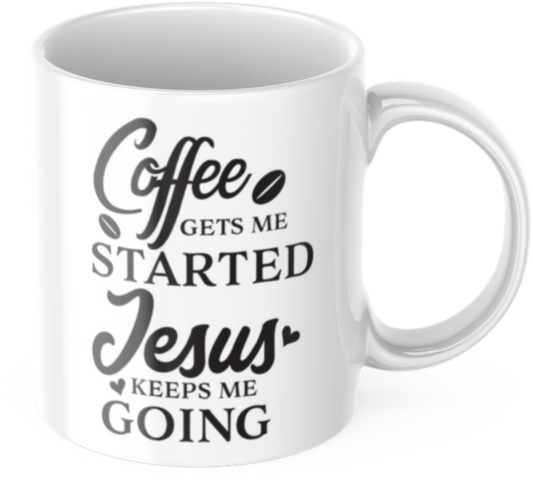 Tasse mit Spruch "Coffee gets me started, Jesus keeps me going" Kirche Kaffee Büro