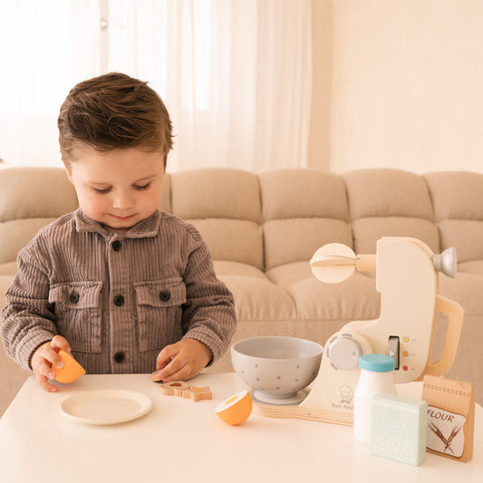 Mixer mit Zubehör aus Holz Creme Kinderküchen-Zubehör Kinderspielzeug