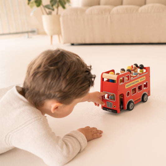 Sightseeing Bus City Tour Bus m. 9 Spielfiguren aus Holz Holzspielzeug