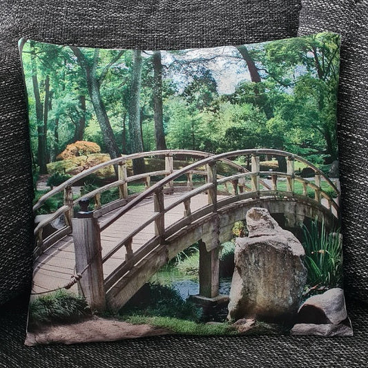 Kissenbezug Waldbrücke am Fluss - 45cm x 45cm