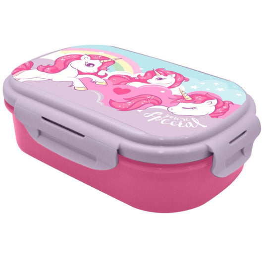 Einhorn Brotdose mit Besteck drei Einhörner auf einer Wolke mit Regenbogen