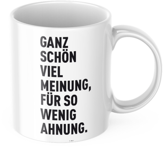 Lustige Kaffeetasse "Ganz schön viel Meinung für so wenig Ahnung" Frühstück Morgen Arbeit Tasse Büro Geschenk