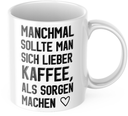 Lustige Kaffeetasse "Manchmal sollte man sich lieber Kaffee als Sorgen machen" Frühstück Morgen Arbeit Tasse Büro Geschenk