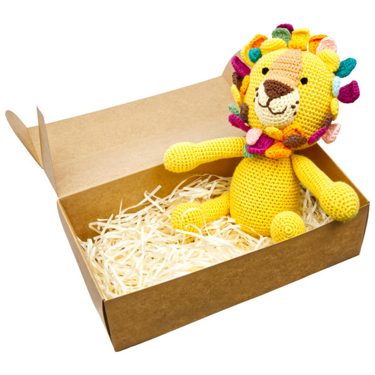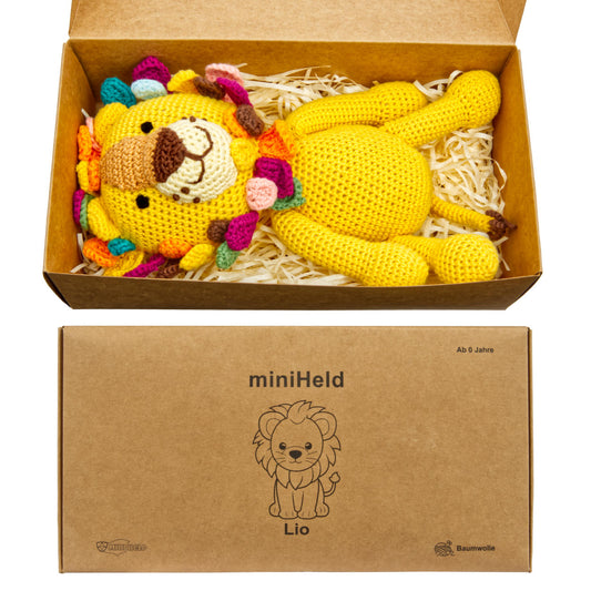 Handgestrickter Löwe "Lio" gehäkelt Spielzeug 28 cm aus Baumwolle