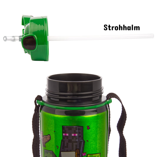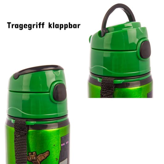 Kinder Trinkflasche Minecraft 600ml Tragegurt Aluminium GameCharakter