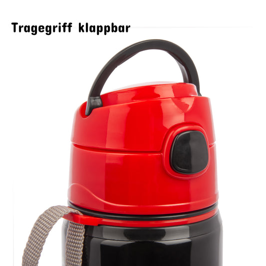 Kinder Trinkflasche Spiderman 600ml Schwarz Tragegurt Alu Marvel Held