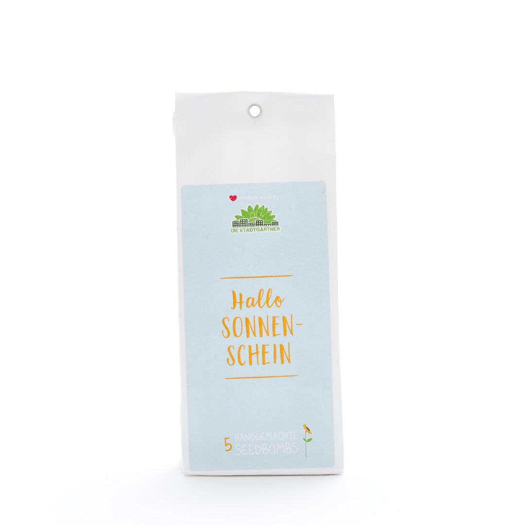 Die Samenbomben 'Hallo Sonnenschein' bringen den Frühling in deine Umgebung. Jede Samenbombe enthält eine kunterbunte Mischung aus 25 Kräutern, Gräsern und heimischen Wildblumen.