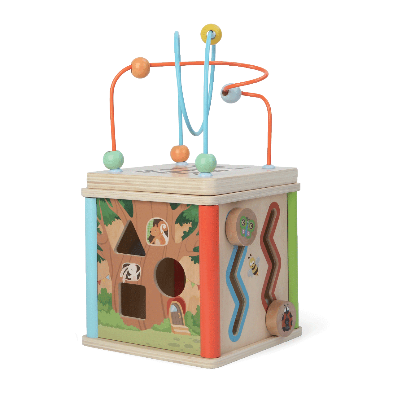 Dieser 15 cm große Würfel ist randvoll mit spannenden Aktivitäten, die das räumliche Denken, die feinmotorischen Fähigkeiten und die Aufmerksamkeit deines Kindes fördern. Stundenlanger Entdeckungsspaß garantiert!