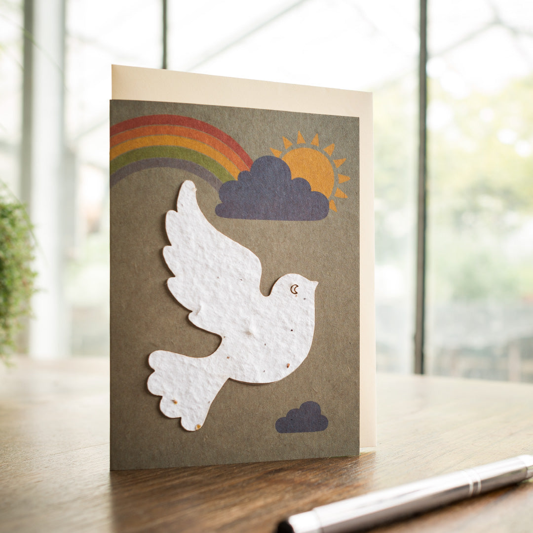 Darüber hinaus sprießen aus unserer Taube bunte, friedliche Blumen.