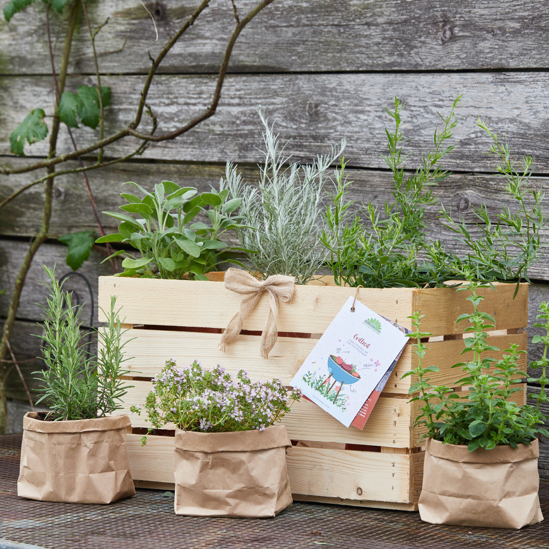 Die Pflanzen werden in der Holzkiste mit entsprechenden 'Setcards' geliefert. Mehr Informationen zu diesem Set und den enthaltenen Pflanzen findest du weiter unten auf dieser Seite. Sollte eine Pflanze kurzfristig nicht verfügbar sein, wird sie durch eine ähnliche Pflanze ersetzt.