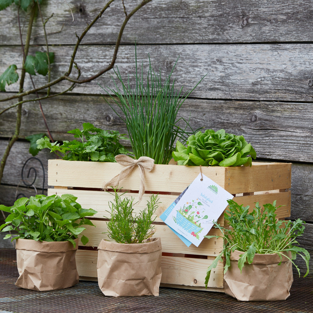 Die Pflanzen werden in der Holzkiste mit entsprechenden 'Setcards' geliefert. Mehr Informationen zu diesem Set und den enthaltenen Pflanzen findest du weiter unten auf dieser Seite. Sollte eine Pflanze kurzfristig nicht verfügbar sein, wird sie durch eine ähnliche Pflanze ersetzt.