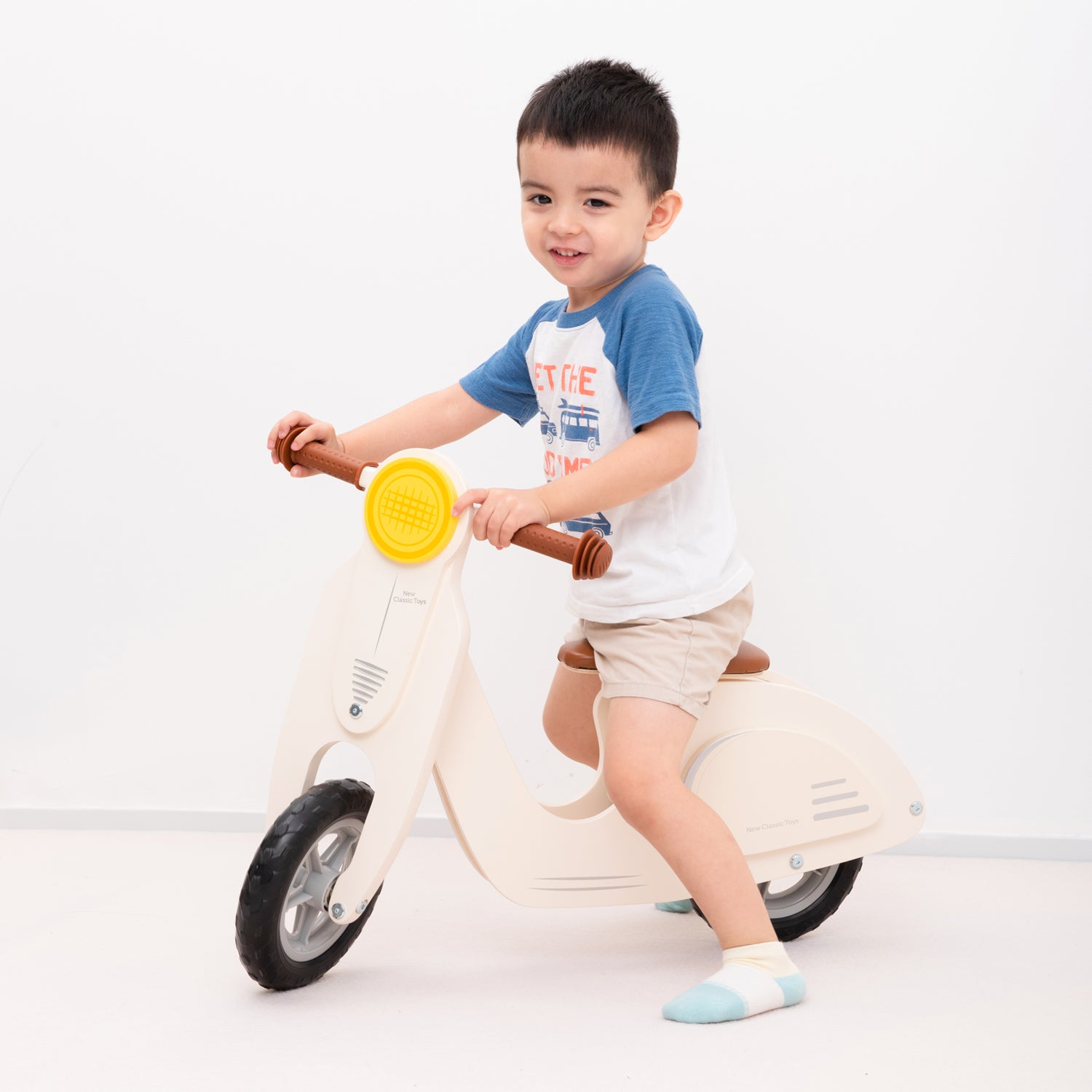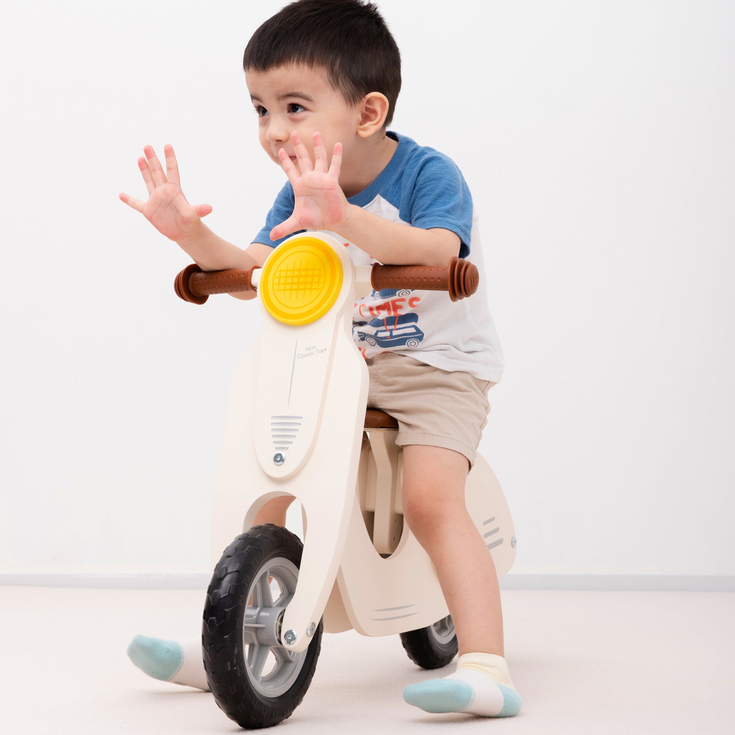 Stilvollen Laufroller aus Holz - ein eleganter Rutscher in Creme, der Ihrem Kind dabei hilft, spielerisch das Gleichgewicht zu entwickeln und erste Fahrversuche zu unternehmen!