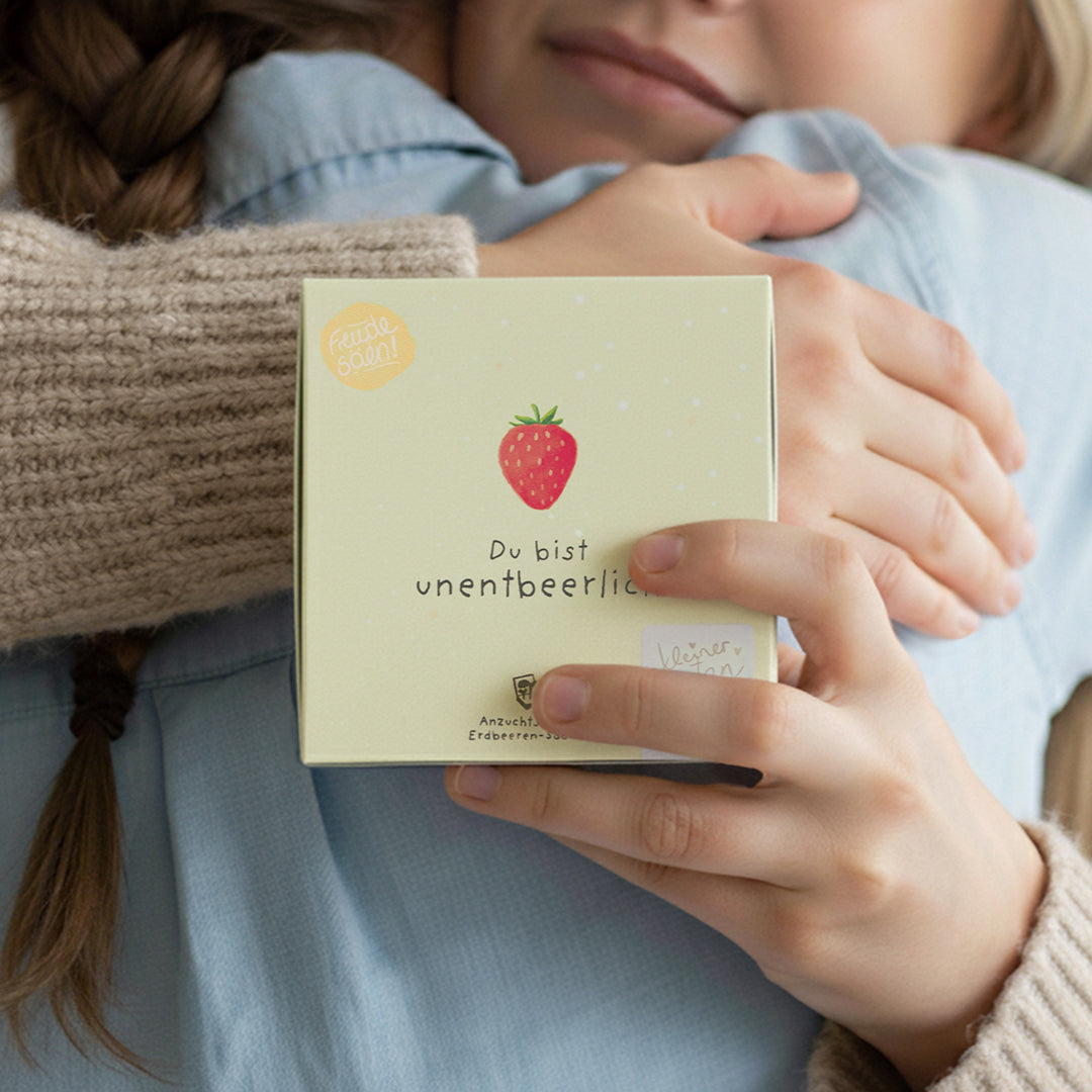 Wächst mit - wie echte Wertschätzung: Wenn die Pflänzchen größer werden, kannst du sie samt Matte in einen größeren Topf oder ins Beet setzen. So wird aus einem liebevollen Wortspiel ein kleiner Erdbeertraum - und eine fruchtige Erinnerung, die bleibt.