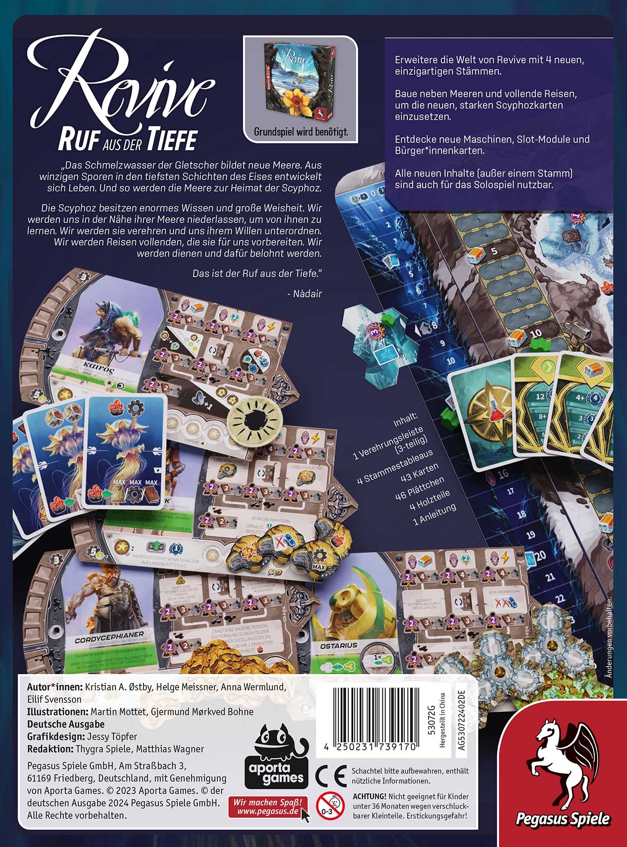 In der Erweiterung Revive: Ruf aus der Tiefe kommt die geheimnisvolle Lebensform der Scyphoz ins Spiel, die in den riesigen Meeren lebt, die durch das Schmelzwasser der Gletscher entstehen. Wer in der Nähe von Meeren baut, erhält Verehrungspunkte und so Zugang zu den neuen, starken Scyphozkarten. Außerdem sind nun auch Reisen möglich.