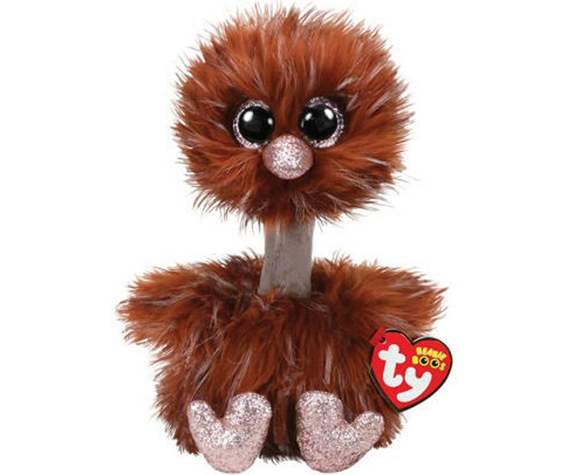 Er ist braun mit Glitzeraugen und 15 cm groß.