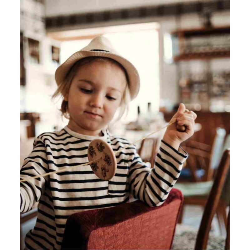 Der Buzz Spinner von Wooden Story bringt ein Stück Kindheit zurück – ganz ohne Technik, dafür mit jeder Menge Bewegung, Klang und Begeisterung. Durch einfaches Drehen und Ziehen beginnt sich die Holzscheibe zu drehen und erzeugt ein fröhliches Summen – wie eine kleine Hummel im Flug. Kinder erleben dabei nicht nur ein faszinierendes Geräusch, sondern schulen ganz nebenbei ihre Konzentration, Motorik und Sinneswahrnehmung.